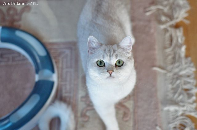 Mała Georgia trafiła do nas na początku tego roku z hodowli Torridonian, skąd pochodzi Cleo, nasza srebrna Supreme Championka. Gruzik, jak ją nazywamy to kot przytulak, mruczy, tupie, układa się na kolanach. Georgia zachwyciła nas nie tylko swoją naturą, ale także wyjątkowym rodowodem. Jest cudowną mamą srebrnych i złotych kociątek.