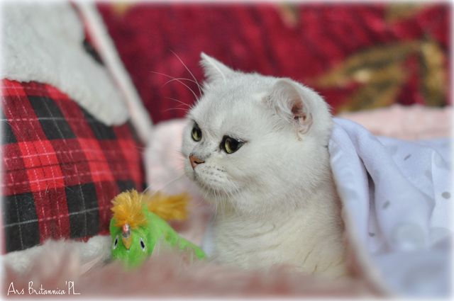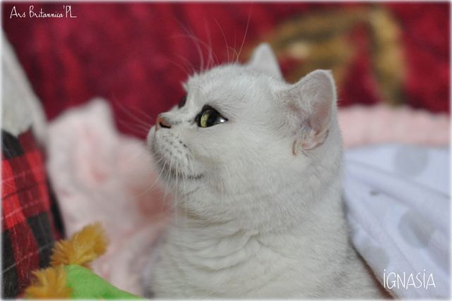 Ignasia to duża spokojna kotka. Budowę wzięła po tacie, okrągłe ogromne oczy po mamie. Ignasia niesie gen pointa i w przyszłości powinna obdarzyć nas słodkimi srebrnymi niebiesko i zielonookimi maluszkami.