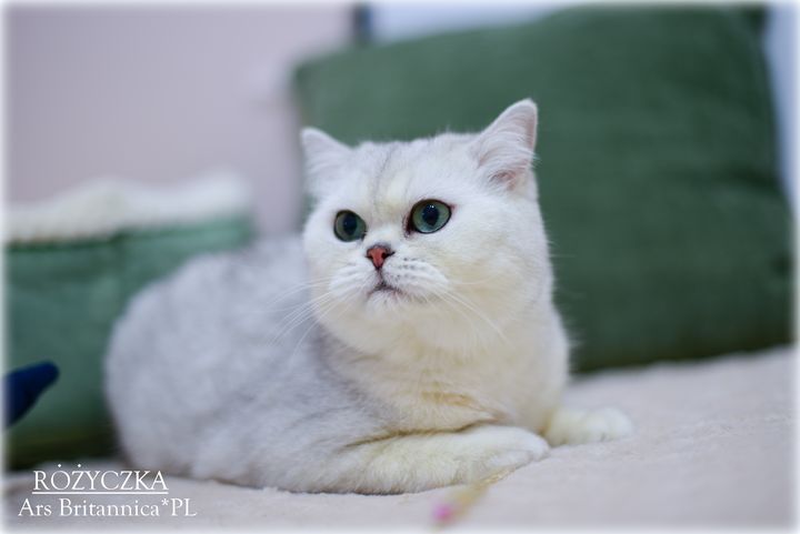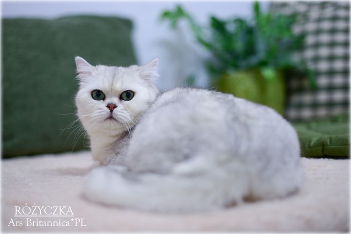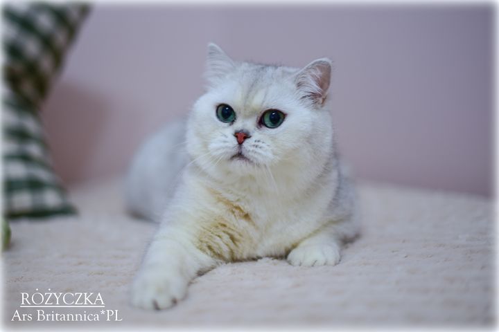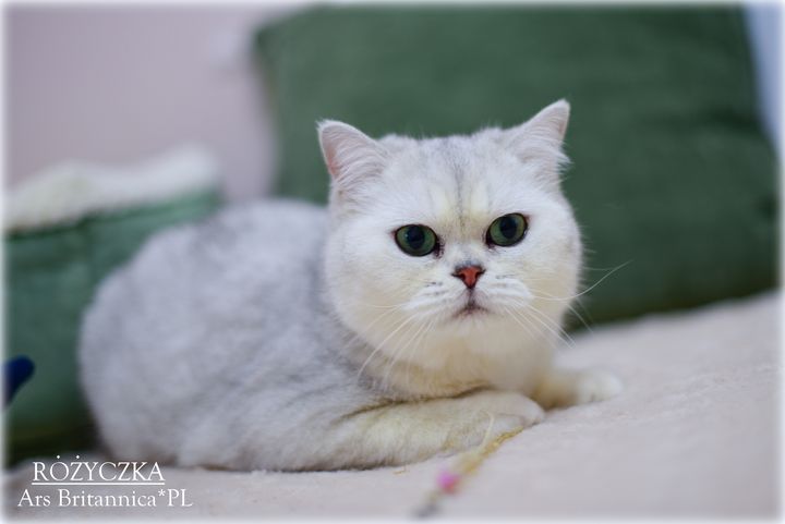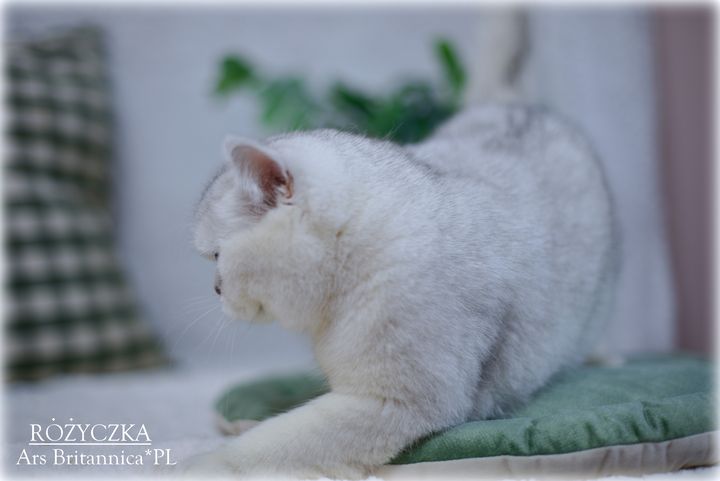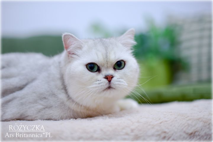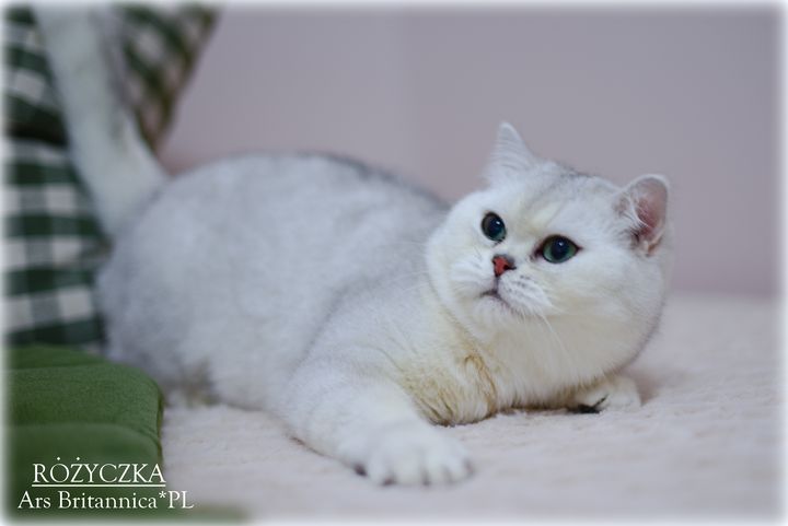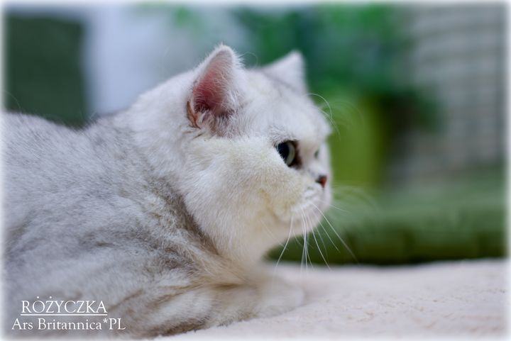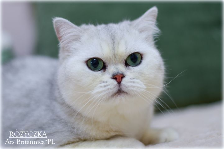 Różyczka jest taka prawdziwie brytyjska. Ma bardzo gęste, pluszowe futerko, niesamowicie okrągłą głowę i wielkie zielone oczy. Uwielbia też mieć mnie dla siebie. Wyrzuca wtedy tylne łapki "na supermana" i domaga się głaskania po pleckach, drapania za uszkiem i w ogóle 100% uwagi. To dobra mama i przekazuje wspaniały typ dzieciom, oczywiście charakter też, więc dzieci naszej gwiazdeczki to jak ona prawdziwe divy i królewicze :)
